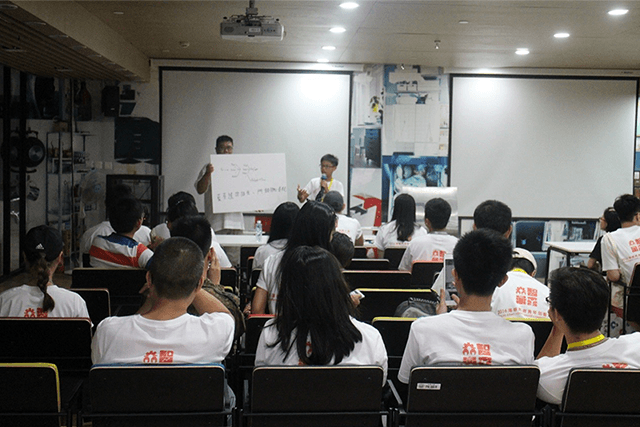 ▲.如火如荼的大賽現(xiàn)場(chǎng)-各個(gè)小組成員在進(jìn)行反復(fù)討論和作品制作