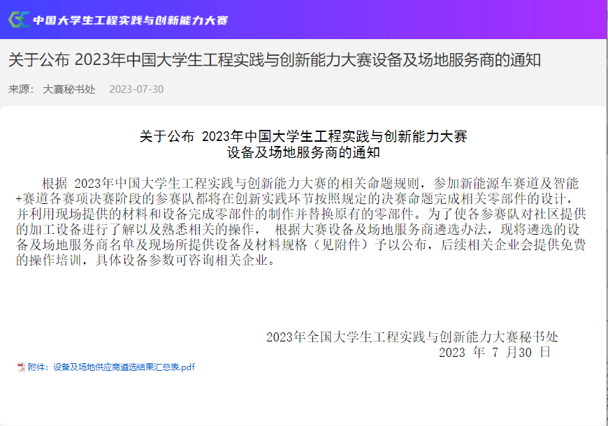 中國大學(xué)生工程實(shí)踐與創(chuàng)新能力大賽是教育部高等教育司發(fā)文舉辦的全國性大學(xué)生科技創(chuàng)新實(shí)踐競賽活動,是基于國內(nèi)各高校綜合性工程訓(xùn)練教學(xué)平臺,為深化實(shí)驗(yàn)教學(xué)改革,提升大學(xué)生工程創(chuàng)新意識、實(shí)踐能力和團(tuán)隊(duì)合作精神,促進(jìn)創(chuàng)新人才培養(yǎng)而開展的一項(xiàng)公益性科技創(chuàng)新實(shí)踐活動。
