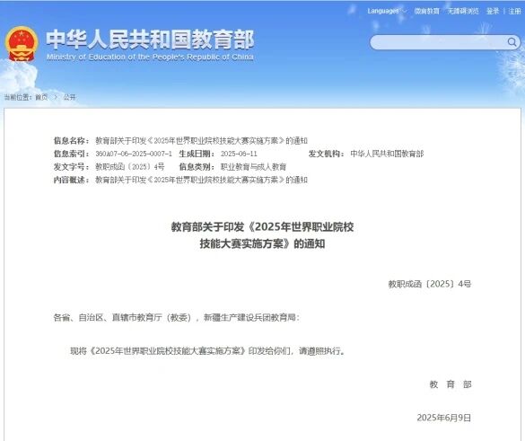 世界職業(yè)院校技能大賽是我國職業(yè)教育領(lǐng)域的重大制度設(shè)計和創(chuàng)新。該賽事于2024年由全國職業(yè)院校技能大賽升級而來,是由教育部、國家發(fā)展改革委、科技部、工業(yè)和信息化部等部門聯(lián)合舉辦的一項公益性、國際性職業(yè)院校綜合技能競賽。2025年世界職業(yè)院校技能大賽實行初賽、復(fù)賽、總決賽三級賽制,總決賽分爭奪賽、排位賽、冠軍總決賽三個階段進行。參賽對象涵蓋中等職業(yè)學校、高職??茖W校、本科層次職業(yè)學校。