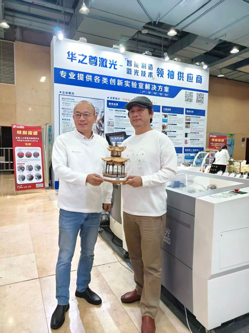 展會(huì)現(xiàn)場(chǎng),華之尊激光以其在教育領(lǐng)域的卓越成就亮相,全面展示了包括教學(xué)成果、教材/課程成果、科研成果、大賽成果、賽事支持、平臺(tái)建設(shè)以及就業(yè)育人/協(xié)同育人等多個(gè)維度的輝煌成果,并攜多款升級(jí)智能制造微納激光加工設(shè)備驚艷亮相,不僅為職業(yè)院校藝術(shù)設(shè)計(jì)相關(guān)專(zhuān)業(yè)提供了堅(jiān)實(shí)的技術(shù)支撐和豐富的教學(xué)資源,而且為廣大學(xué)生搭建了一個(gè)廣闊的實(shí)踐平臺(tái),極大地增強(qiáng)了他們的創(chuàng)新思維和實(shí)踐操作能力,為培育新時(shí)代的設(shè)計(jì)英才貢獻(xiàn)了重要力量。